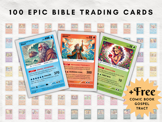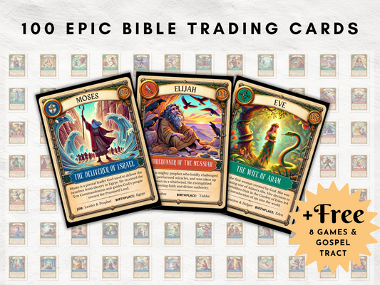 100 Printable Bible Trading Cards | Old Testament Character Collection | Christian Sunday School Teaching Aid and Reward | Bag Tags | Gospel