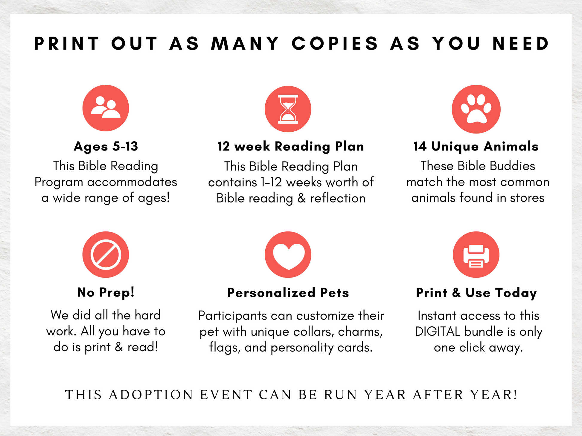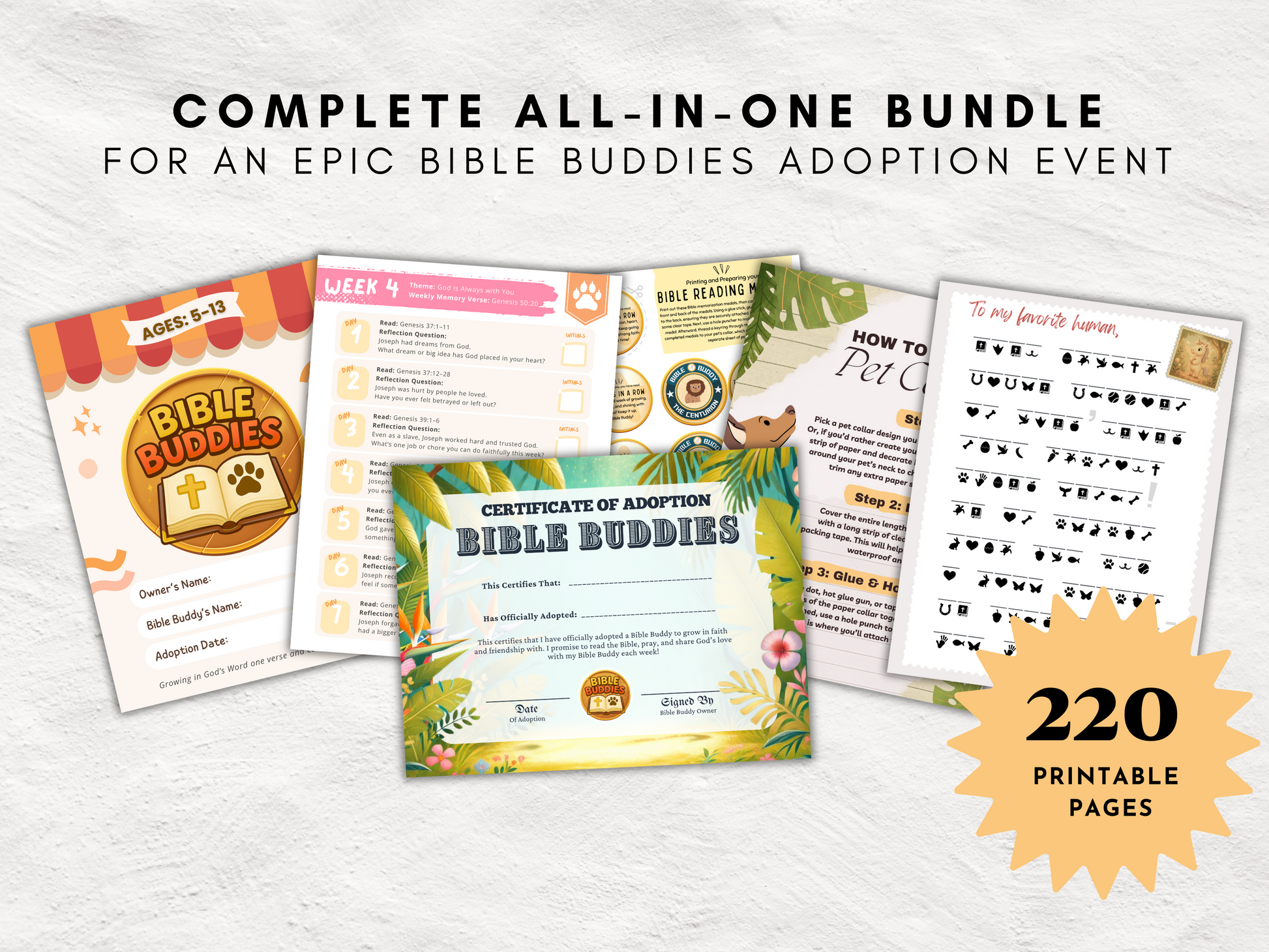Bible Buddies Adoption Event Kit | Printable Kids Bible Reading Program | Christian Digital Download for Children's Church & Sunday School