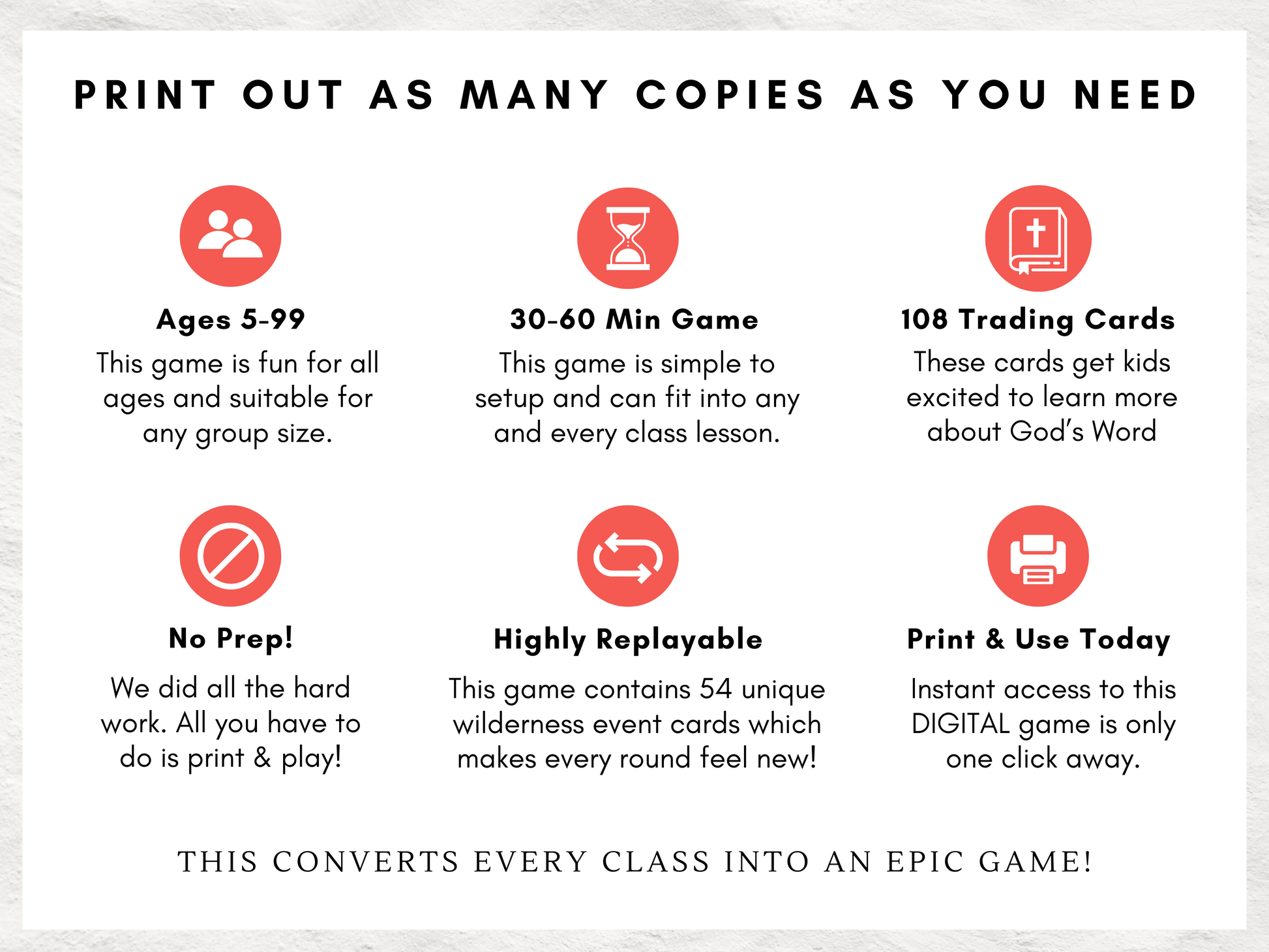 Designed for Sunday school teachers, Christian educators, and youth pastors, this game gets students excited to contribute while deepening their connection with Scripture.